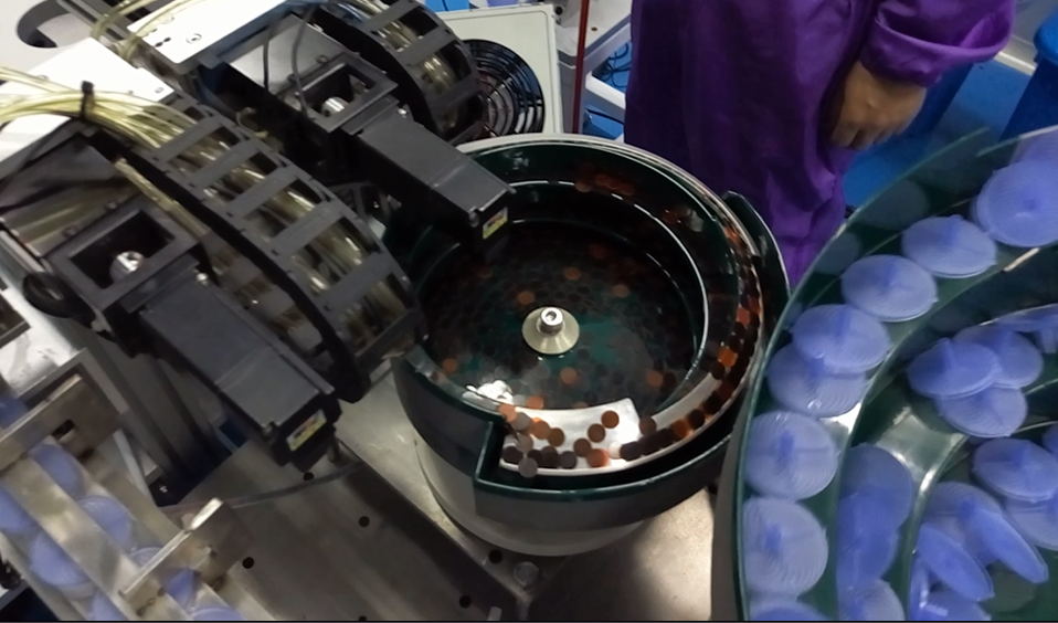 其中分别应用了塑料件自动理序自动上料,在线模切上料,注塑件过盈扣合,及导水壳导水芯自动穿插。